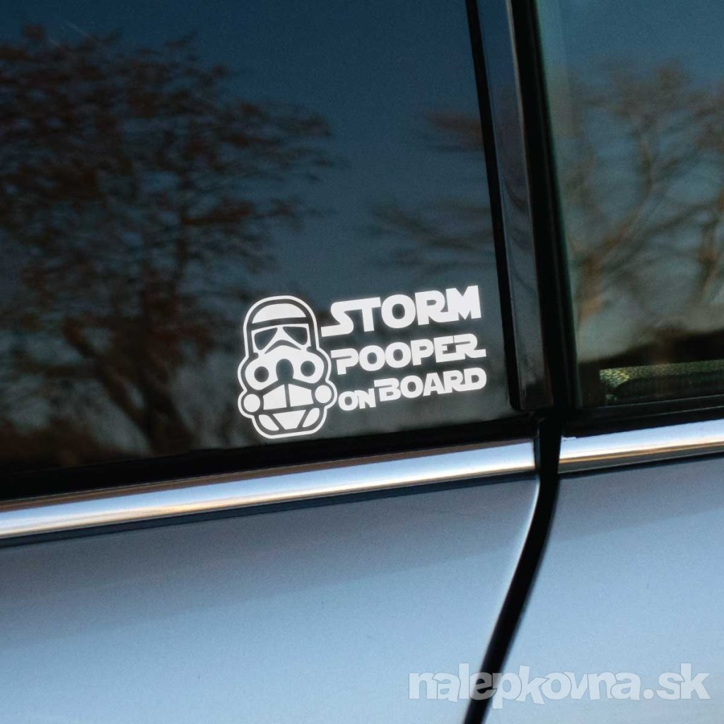 Nálepka "Storm Pooper On Board" je povinnou výbavou pre každé rodinné vznášadlo. Ukáž svetu, že tvoj klan je pripravený na intergalaktické dobrodružstvá, aj keď ich momentálne brzdia časté zastávky na "tankovanie" a hygienu. Sila je s tebou, aj keď máš na rukách zásyp.