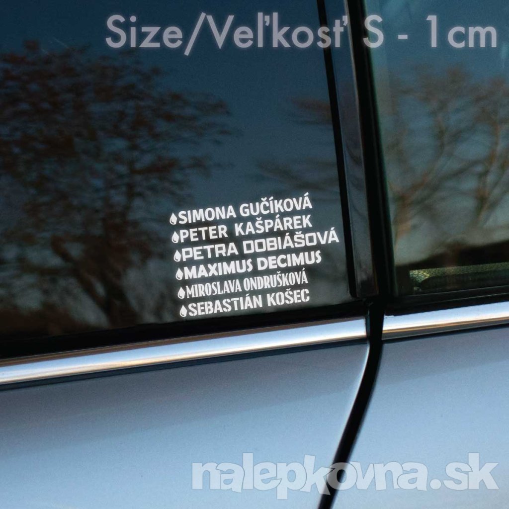 Pri výbere veľkosti S a M odporúčame zvoliť všetky písmenká textu VEĽKÝM PÍSMOM. Ako text do poznámky uvediete, tak Vám bude nálepka vyrobená.