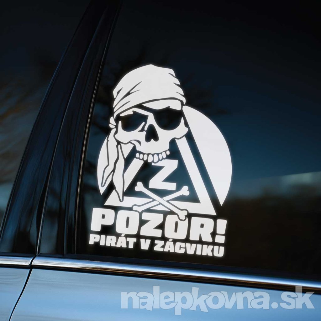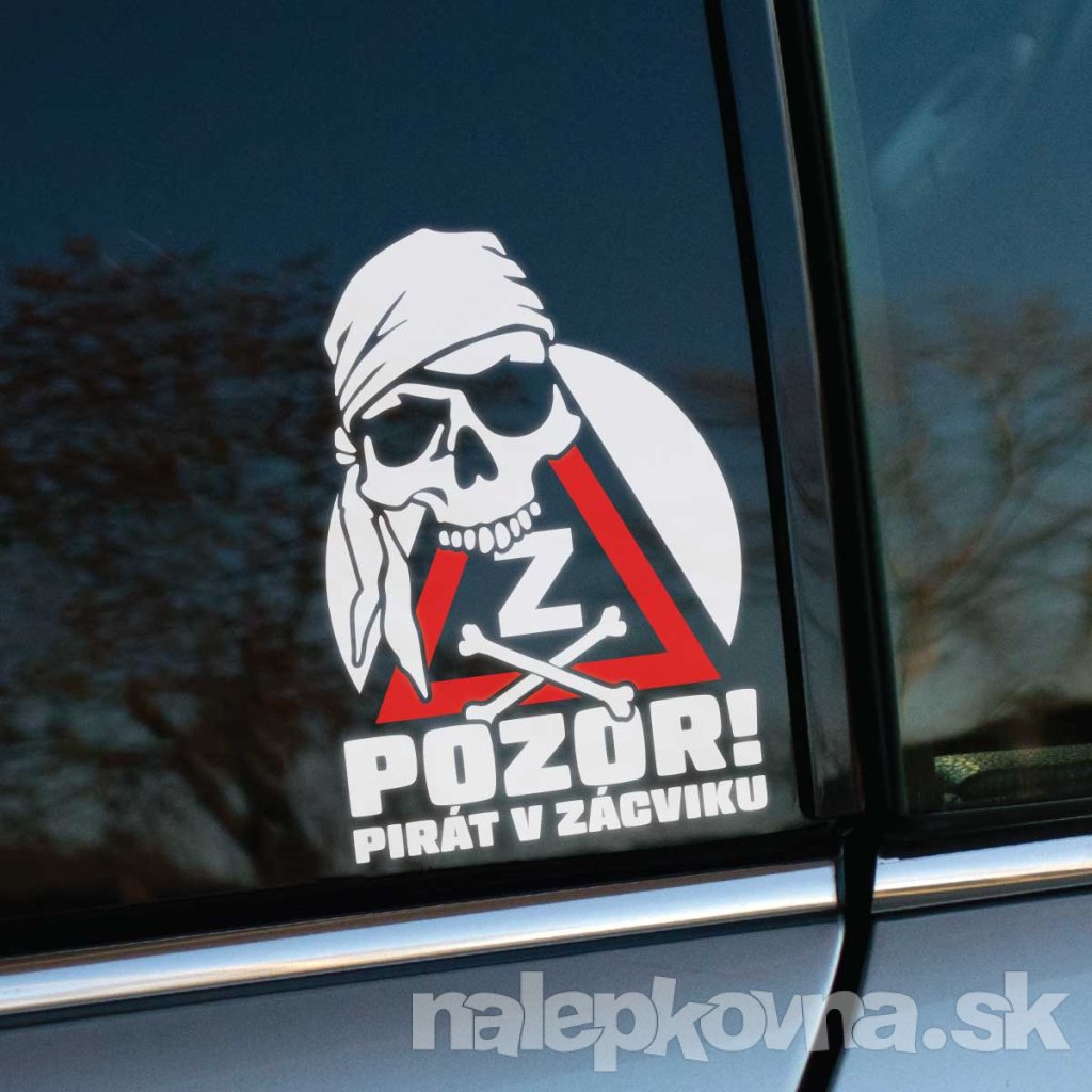 Pozor! Pirát v zácviku – nálepka pre všetkých čerstvých vodičov, ktorí jazdia tak, že aj GPS-ka sa trikrát prekrižuje. Dizajn spája ikonický výstražný trojuholník Z (začiatočník) s pirátskou lebkou v bandane a okuliarmi – výsledok je dokonalá kombinácia chaosu, sebairónie a „na vlastné riziko“ energie.