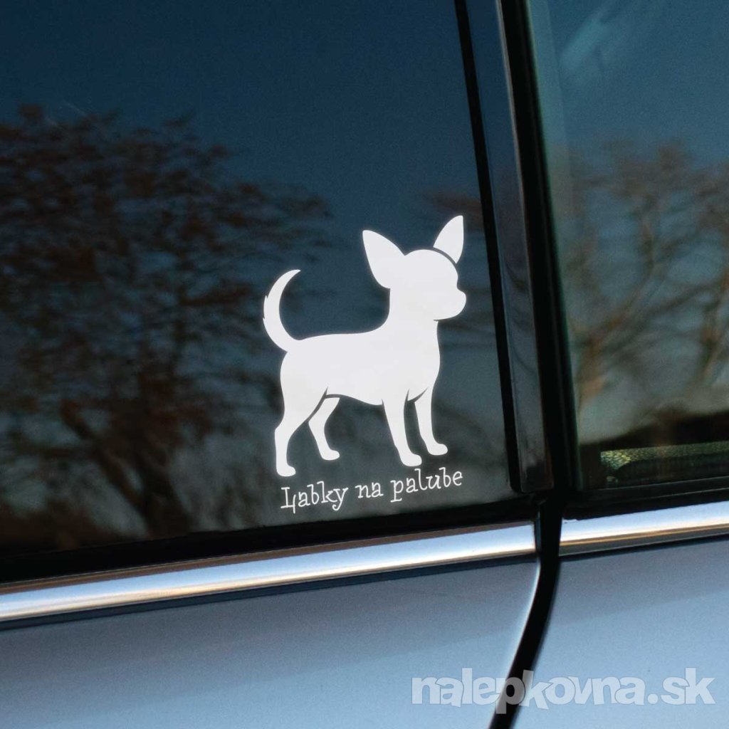 Čivava – nenechaj sa oklamať rozmermi. Táto nálepka patrí na auto niekoho, kto vie, že skutočná sila nepotrebuje obrovské svaly, ale poriadnu guráž.